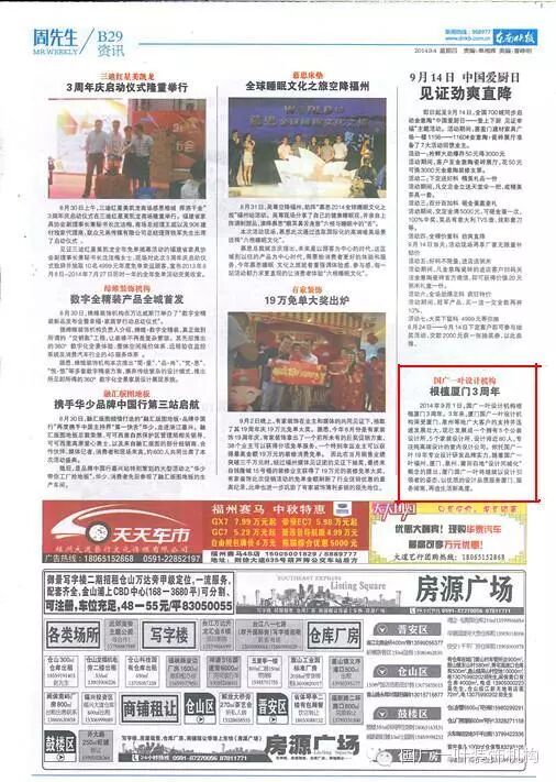 1、2014年9月4日 东南快报B29版资讯刊:国广一叶设计机构根植厦门3周年