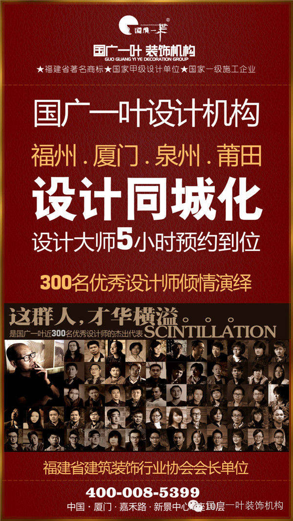 3年来,国广一叶“设计大师”的概念已深入厦门。依托国广一叶19年设计阅历,集聚国广一叶19年专业设计研发品牌实力,随着国广一叶福州、厦门、泉州、莆田四地“设计同城化”概念的提出,厦门国广一叶设计机构将继续以设计引领者的姿态,创见品牌荣耀之典范,不断地探索,不断地历练,不断地突破,以优质的设计品质服务厦门、服务闽南,再造生活新高度。