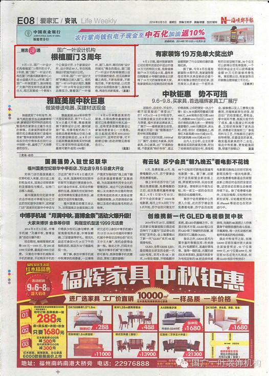 2、2014年9月5日 海峡都市报E08版资讯刊:国广一叶设计机构根植厦门3周年